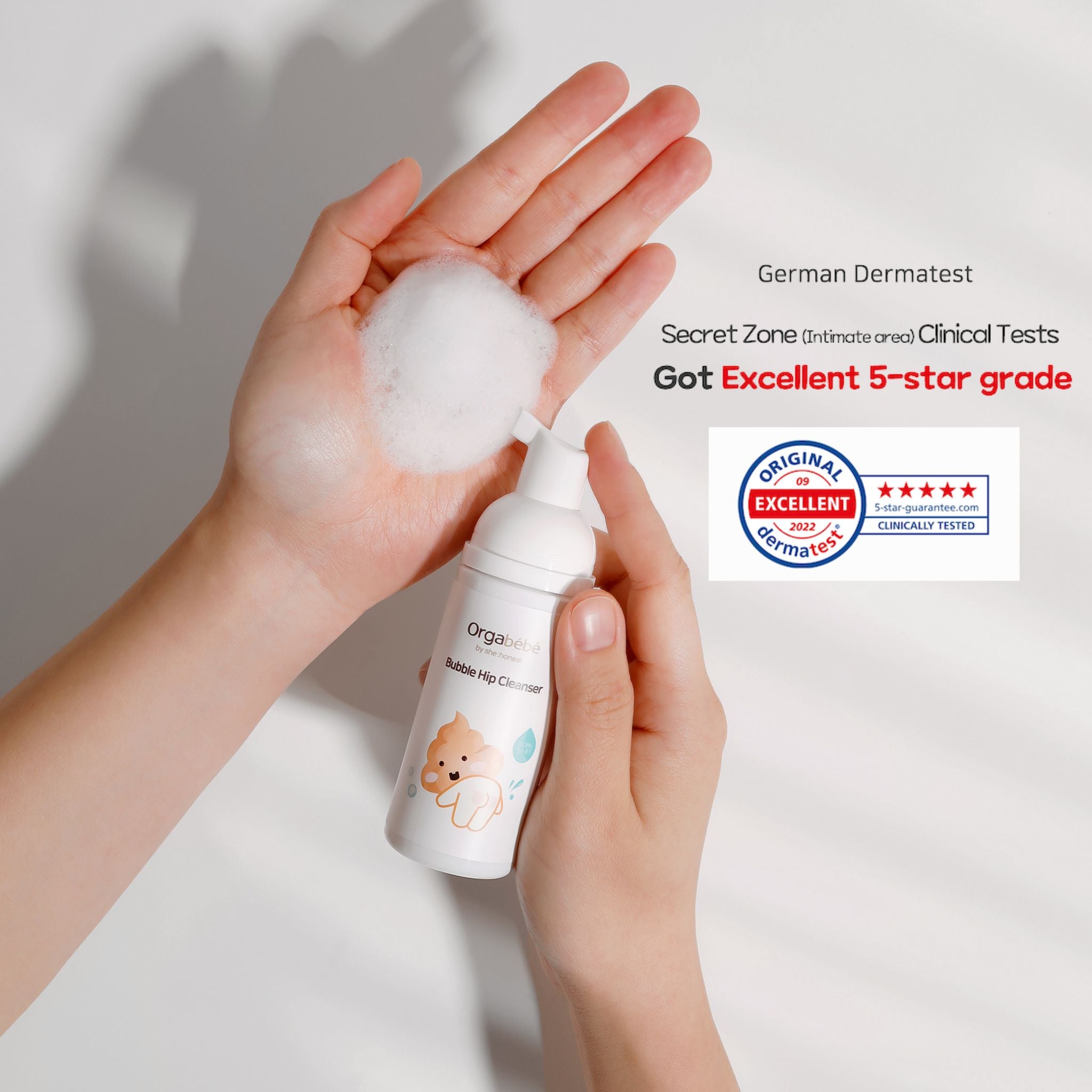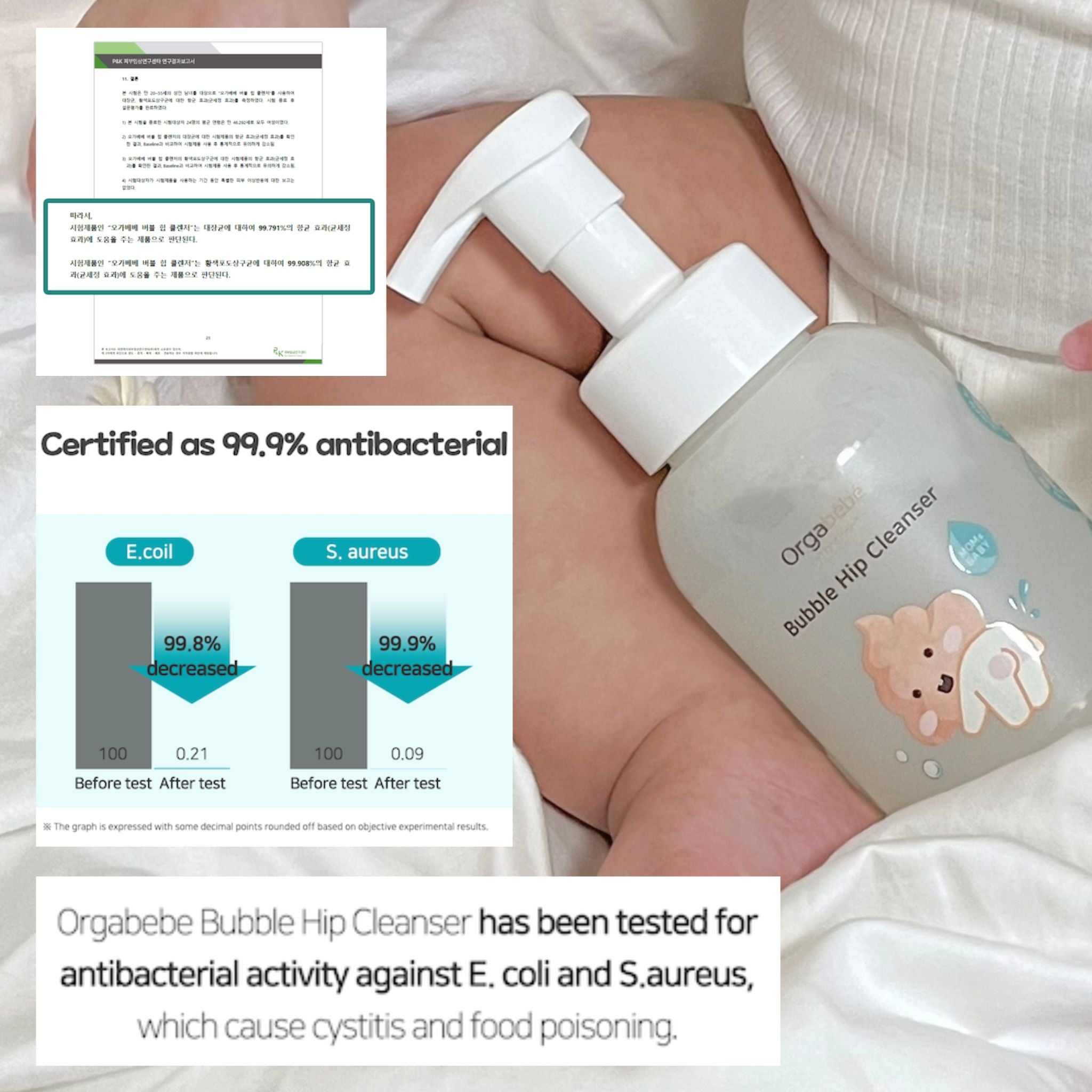 Made of artemisia princeps leaf water, honey extract, aloe vera juice, and allantoin instead of water (aqua), it provides a mild cleanser for frequently washed sensitive areas like baby's bum and Y-zone. Babies have thin stratum corneum so bacterias from feces can cause rash or urethritis. Cleaning it with Orgabebe Hip Cleanser ensures proper hygiene wthout drying out their skin.