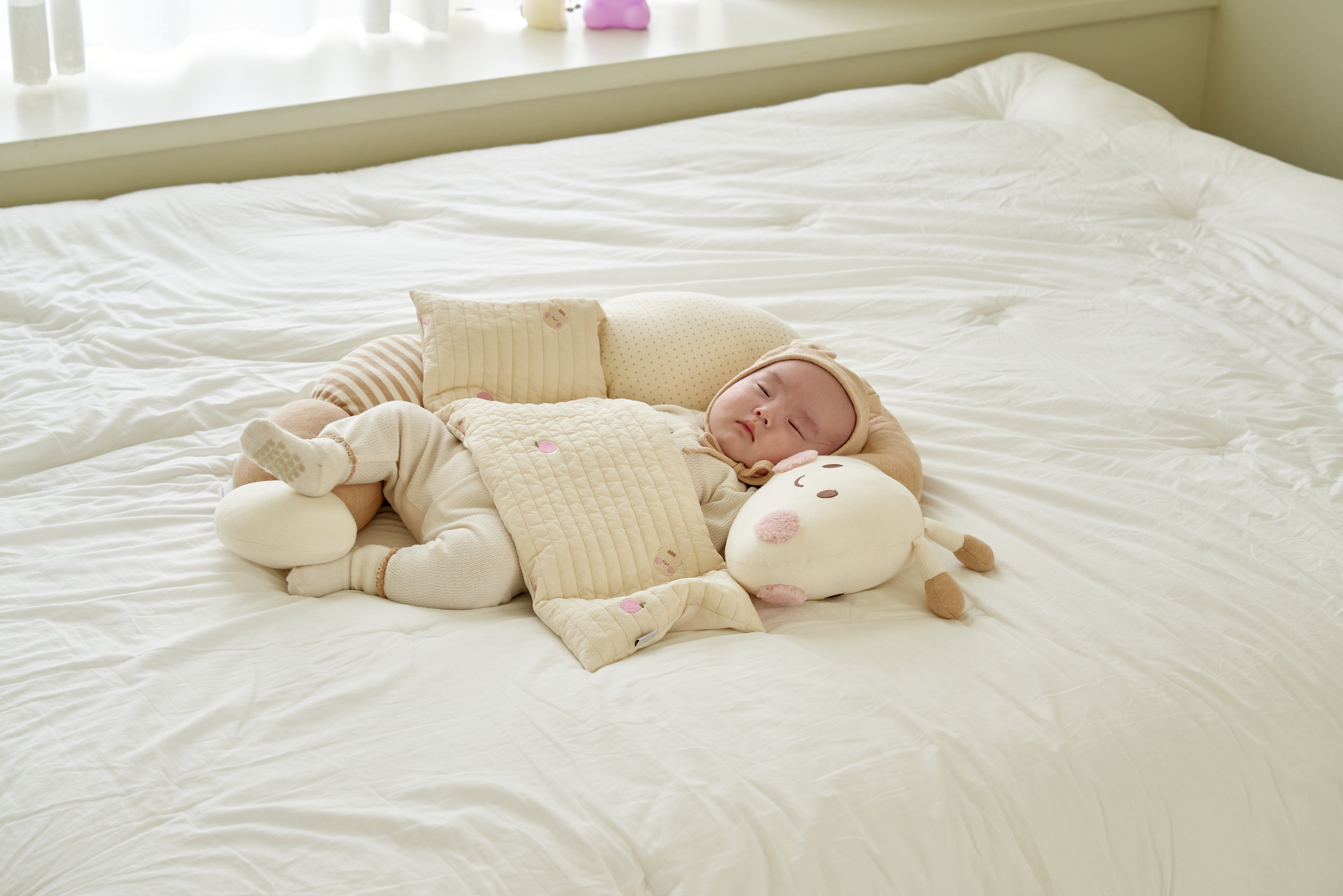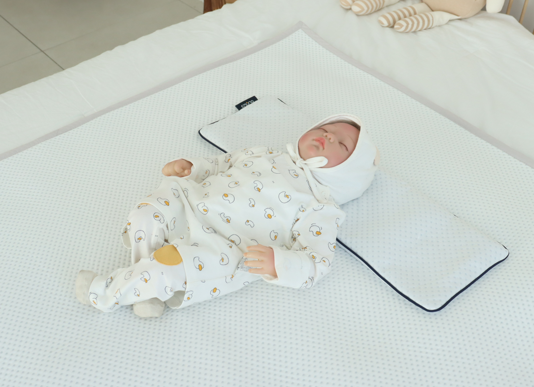 Our Emong baby millet pillow is developed to mimic mother's hug to calm moro reflex in newborns, helping them to sleep better and longer during naps or at night.