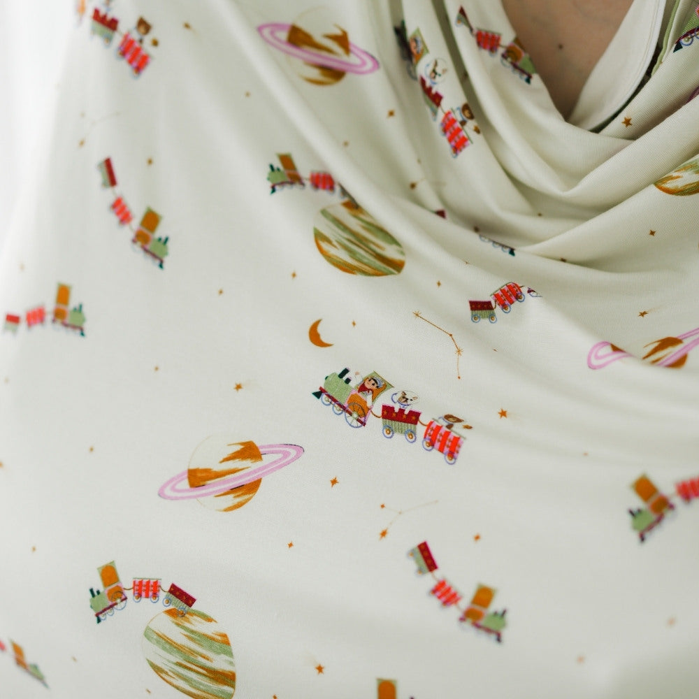 This versatile blanket is built with sewn-in clips that you can easily attach to any strollers and baby carriers. With natural UV protection, it can also shield baby from the sun and double as a nursing / carseat cover.