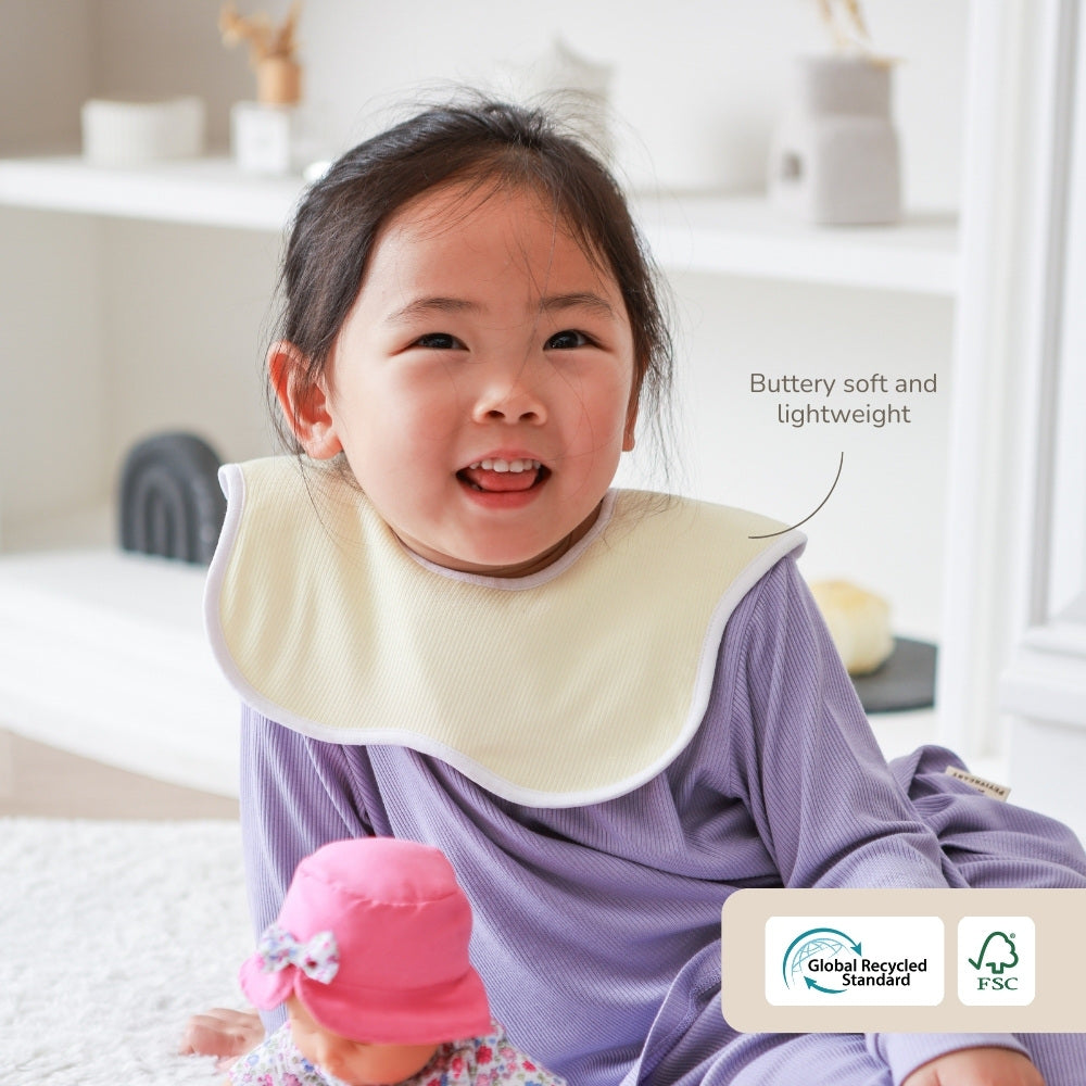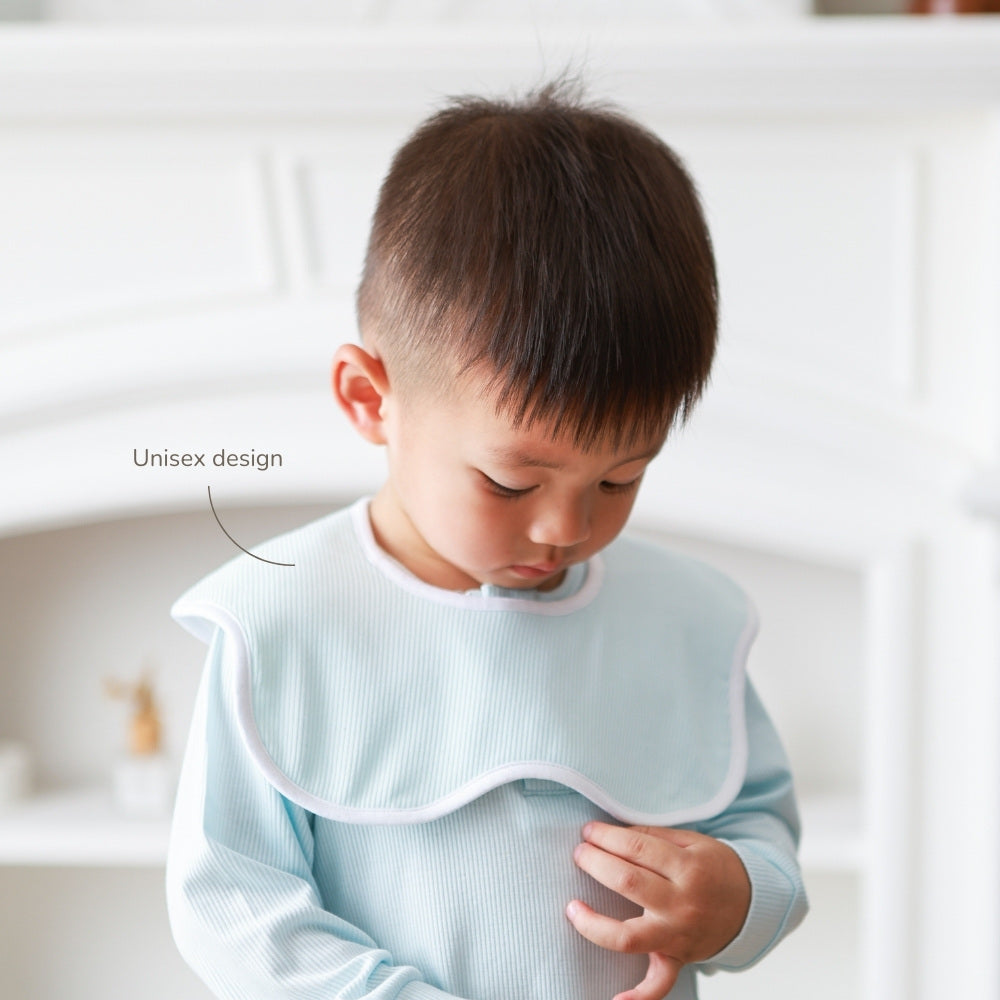 Our snappy bibs just got an upgrade! Now the bibs can be rotated 360 degrees to make sure your bubs’ clothes stay dry all day: