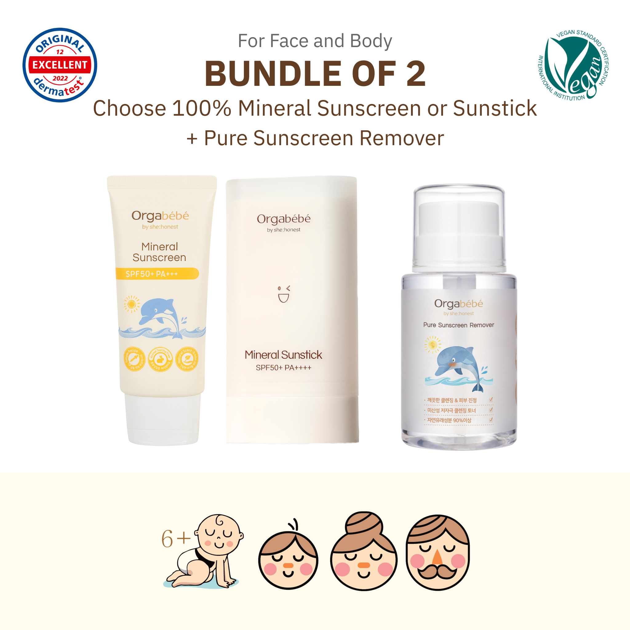 Orgabebe Suncare Bundle - 100% Mineral Sunscreen / Sunstick and Sunscreen Remover