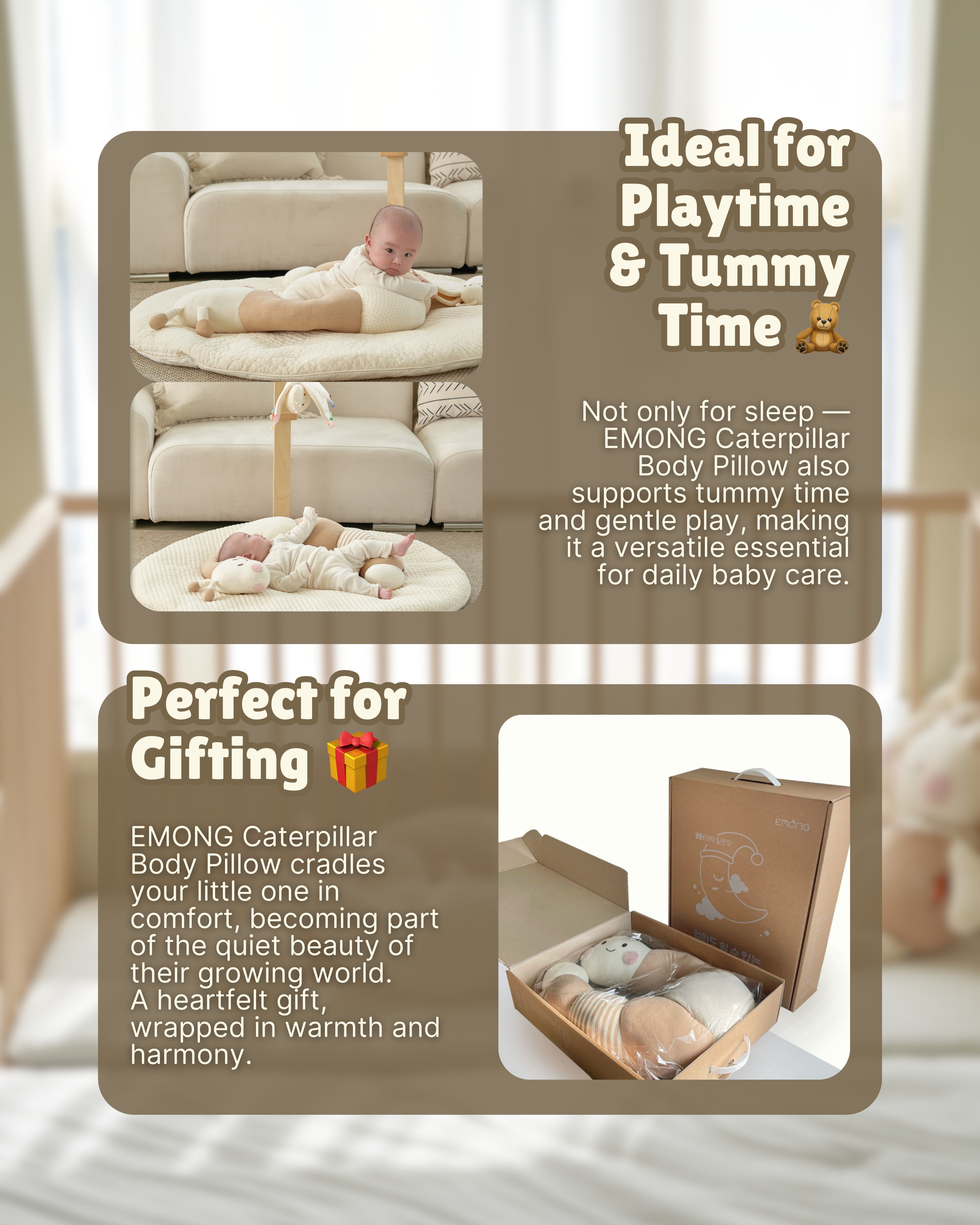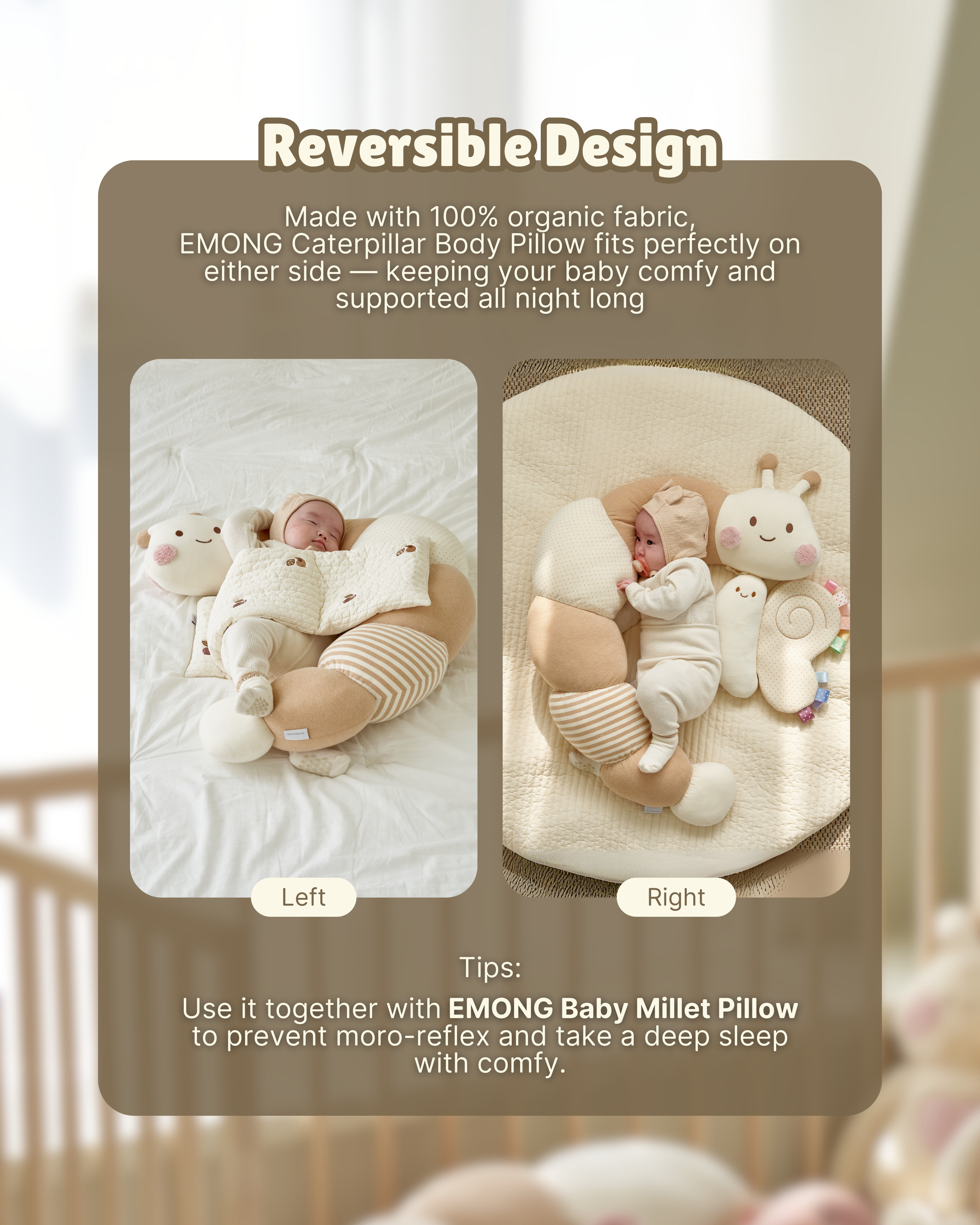 Our Caterpillar Pillow is also designed with versatility in mind, as it can be used on either side. With its dual-sided feature, it's perfect for both left and right sleepers, allowing your little one to sleep soundly in any position. Plus, it makes for an excellent gift, sure to be appreciated by parents and little ones alike!