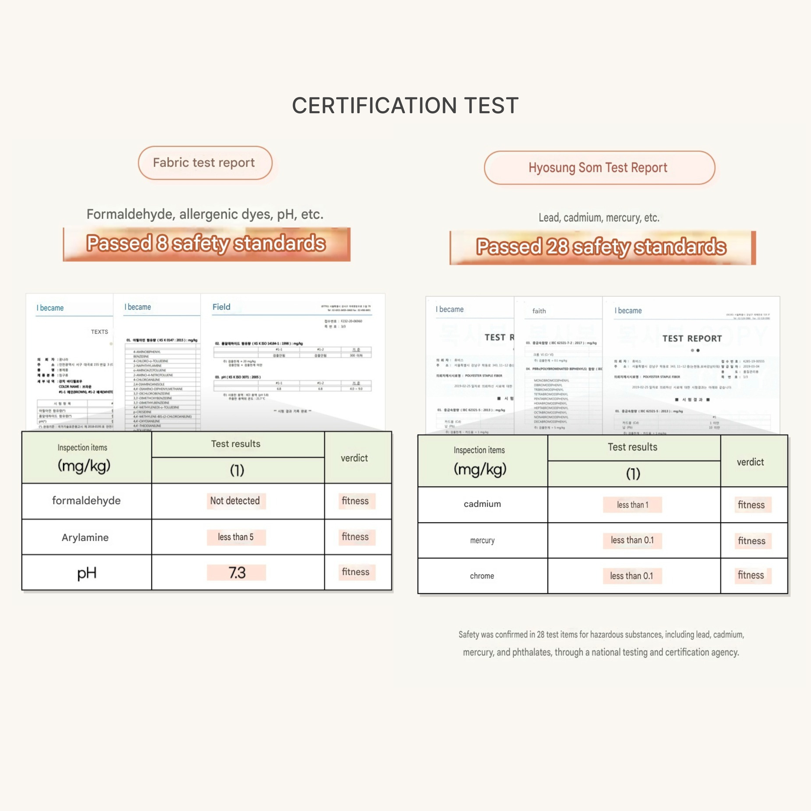 - Tested for safety: NO formaldehyde / heavy metals